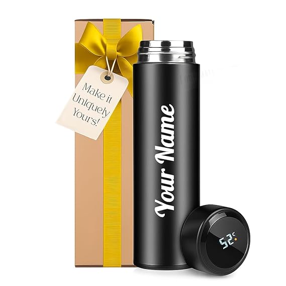 Stay hydrated in style with this Personalized Stainless Steel Sports Water Bottle. Featuring a smart LED Temperature Display, this double wall vacuum insulated flask keeps beverages hot or cold for up to 24 hours. Sleek, durable, and customizable with your name β itβs the perfect blend of utility and style.